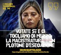Questo è il caso di Giusy Bartolozzi, l’ex capo di gabinetto del ministro della Giustizia, Carlo Nordio. Quella Giusy Bartolozzi? Sì, proprio quella che durante la campagna elettorale per il Referendum sulla giustizia aveva definito la magistratura “un plotone d’esecuzione”. Ora, la ex capo di gabinetto, già magistrato, tornerà a far parte di quel “plotone d’esecuzione”. Proprio a causa di quell’uscita in tv che le è costata il posto. In una sorta di contrappasso l’ex capo gabinetto del ministero della Giustizia, magistrata fuori ruolo dal 2018, ha infatti chiesto di rientrare nell’ordine giudiziario dopo quattro anni da deputata e quasi altrettanti da ministra-ombra al fianco del Guardasigilli Carlo Nordio, prima di essere costretta a dimettersi nel repulisti di governo post-referendario. La sua istanza è arrivata alla Terza Commissione del Consiglio superiore della magistratura, che lunedì scorso ha approvato il ricollocamento in ruolo.